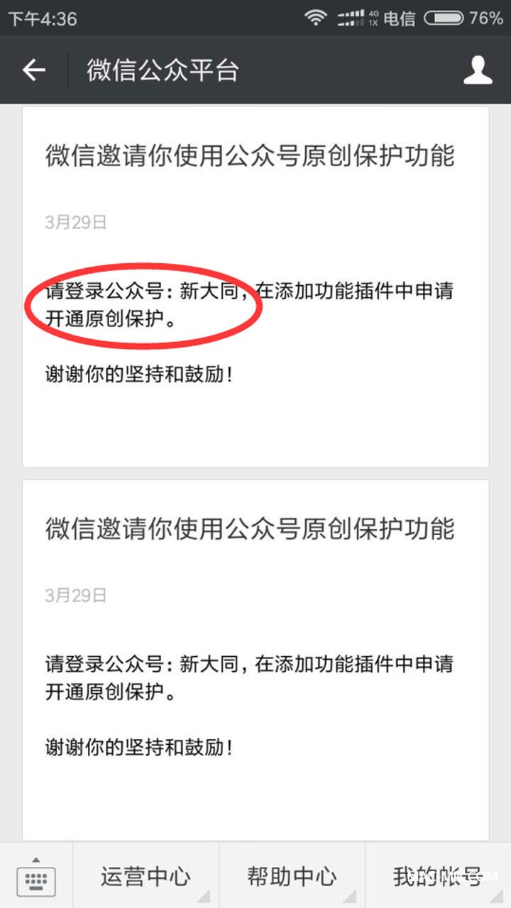 今天下午踏進(jìn)辦公室,剛坐到位置上不久,就聽小編一聲驚呼:“我們獲得微信原創(chuàng)了”,高興的我差點(diǎn)從樓梯上掉下去,果然,“新大同”微信公眾平臺(tái)(sxdt_net)成為官方邀請(qǐng),獲得申請(qǐng)開通“原創(chuàng)聲明”功能。
