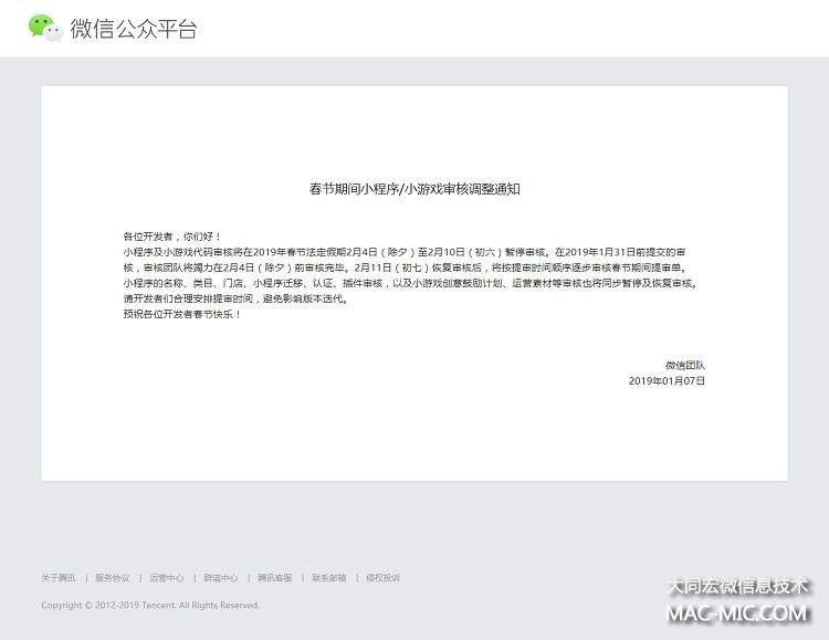 【通知】春節(jié)期間小程序/小游戲?qū)徍苏{(diào)整通知