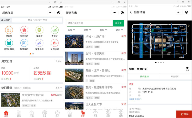 新優(yōu)居的智能化體現(xiàn)在方方面面,不同設(shè)備來訪問網(wǎng)站前臺時,自動顯示與之最相適應(yīng)的界面。并將房產(chǎn)數(shù)據(jù)以電腦端+手機端+微信端+小程序+APP(開發(fā)中)的不同形式