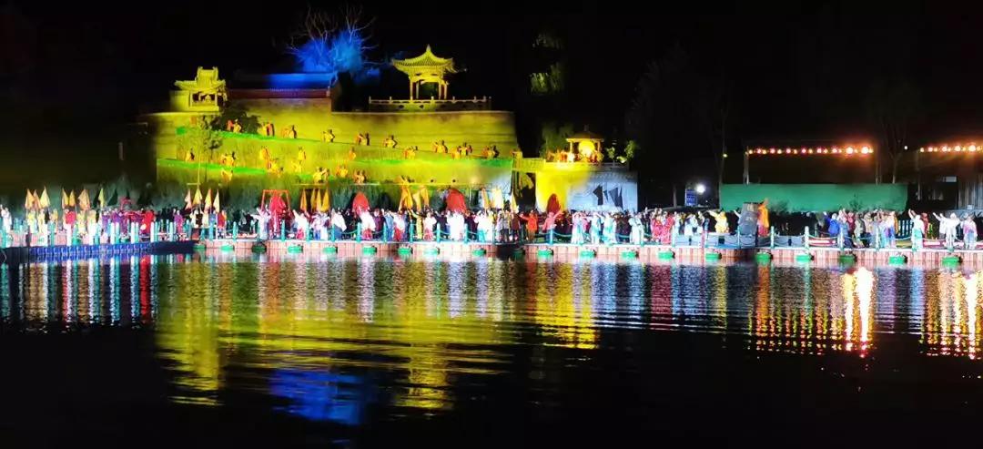 以律呂神祠南側神德湖為主要呈現面,將神德湖、律呂神祠、神溪村作為表現的實體景;在律呂神祠東側的湖面,搭建浮橋,不僅增加水面表演空間,更重要的是設計主體表演區(qū)域;利用激光數字工程投影,在律呂神祠東側墻體上創(chuàng)造不同的景觀;在律呂神祠東側墻體到湖面的落差空間及一側的里水房房頂處搭建銜接平臺,將神溪村東一角,作為古老村寨背景的表現區(qū);將涼亭作為鳳山書院“鳳鳴亭”和恒山文化的背景表演區(qū);將窯洞群作為古寨背景區(qū);以神德湖東南側為主觀眾區(qū)。