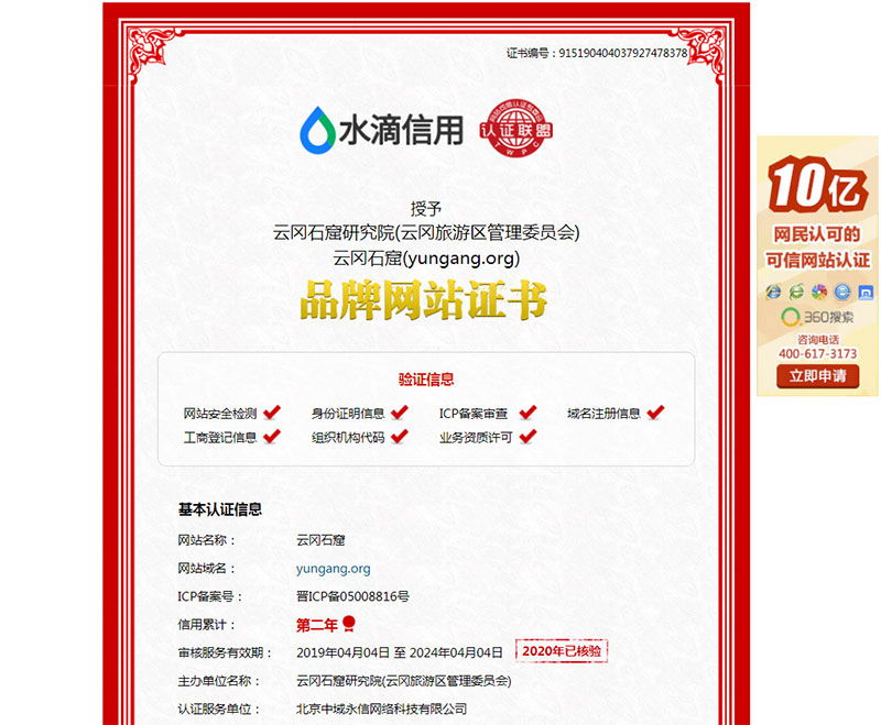 祝賀云岡石窟網(wǎng)站通過信用聯(lián)盟安全認(rèn)證檢測(cè)及官網(wǎng)標(biāo)識(shí)