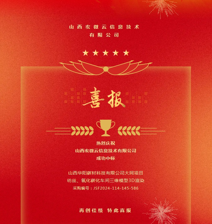熱烈慶祝山西宏微云信息技術有限公司成功中標山西華陽碳材科技有限公司大同項目紡絲、氧化碳化車間三維模型3D渲染采購編號:J…