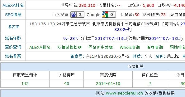 以上所有的權(quán)重查詢都是來自站長(zhǎng)之家的站長(zhǎng)工具,當(dāng)你快速提高了網(wǎng)站權(quán)重后,別人在這個(gè)站長(zhǎng)工具上查詢就會(huì)覺得你的網(wǎng)站很牛X,但是所有的第三方站長(zhǎng)工具都是如此嗎?上面說的搜索50+seo,在站長(zhǎng)工具查看排名第二的網(wǎng)站,權(quán)重是4,那在愛站網(wǎng)查詢呢?