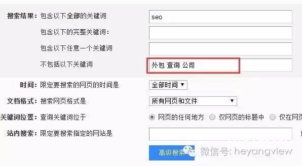 我們可以利用高級(jí)搜索工具對(duì)搜索結(jié)果頁面進(jìn)行篩選,比如我們查詢“seo”關(guān)鍵詞,但是我們不想看出現(xiàn)seo外包,seo公司,seo查詢這一類的網(wǎng)站的,此時(shí)我們就可以在,限制關(guān)鍵詞中添加“外包 查詢 公司”即可;