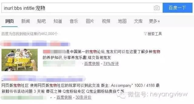 假如你是做寵物行業(yè)的,不錯(cuò)的寵物的論壇,平臺(tái)都是發(fā)外鏈不錯(cuò)的選擇,此時(shí)我們可以這樣搜索“inurl:bbs intitle:寵物”,這個(gè)時(shí)候我們就能快速的把寵物論壇篩選出來;