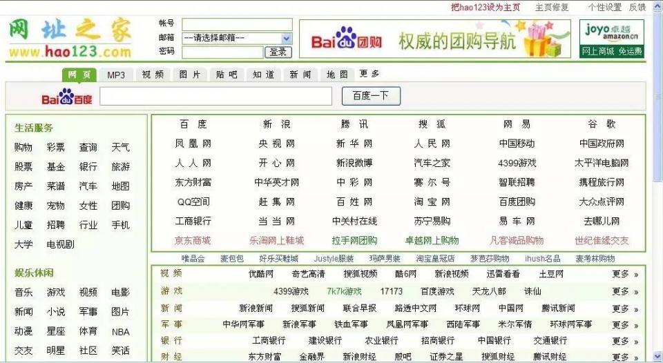 跟它的名字一樣,Hao123頁面非常簡單,只有各類網(wǎng)站的導航列表。