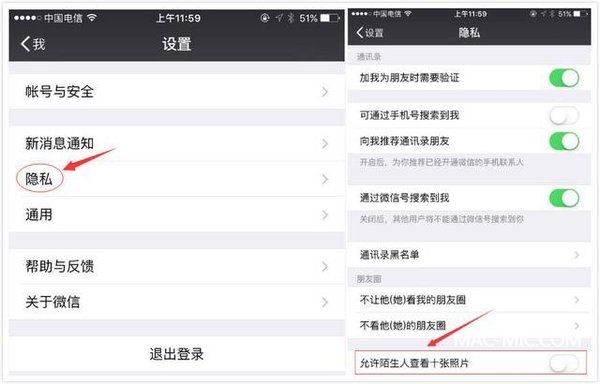 點(diǎn)擊[我]—[設(shè)置]—[隱私],拉至頁面最下方,找到[允許陌生人查看十張照片]功能,滑動(dòng)關(guān)閉它。