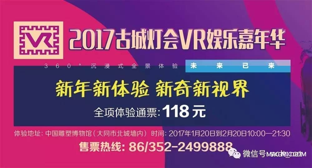 大同古都燈會(huì)VR嘉年華活動(dòng)時(shí)間為2017年1月20日-2017年2月20日,每天上午10:00至晚21:30