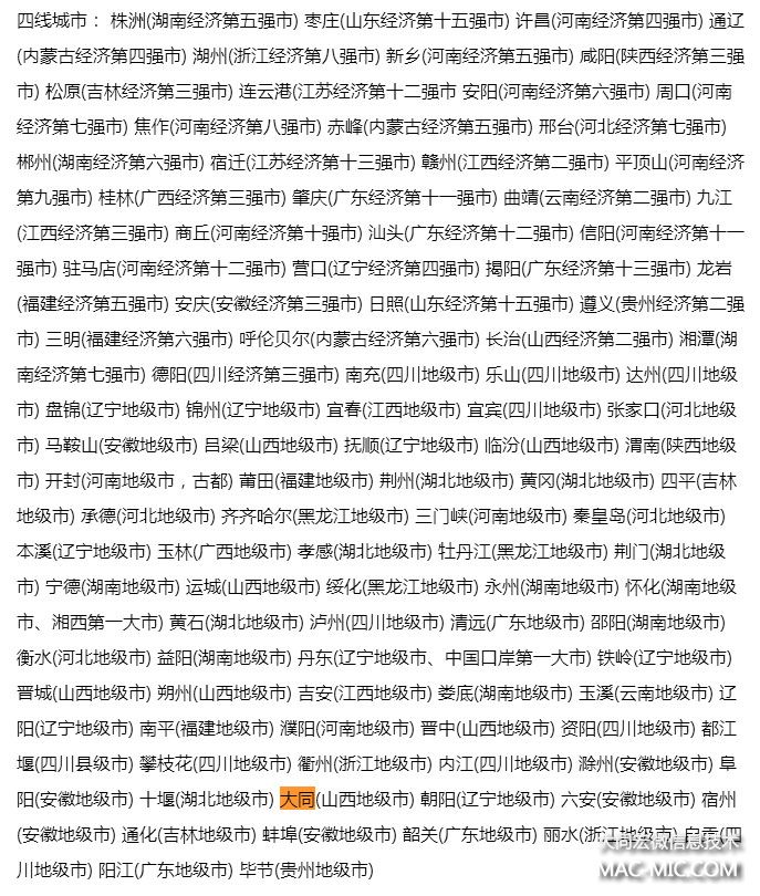 而在四線城市的末尾,將將就就的出現一個熟悉的名字:大同
