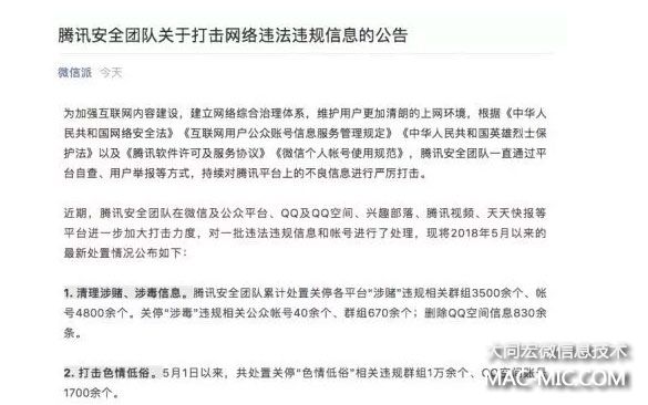 騰訊今日宣布關(guān)閉多平臺帳號累計(jì)4800余個(gè) 審查 移動(dòng)互聯(lián)網(wǎng) 微信 微新聞 第1張