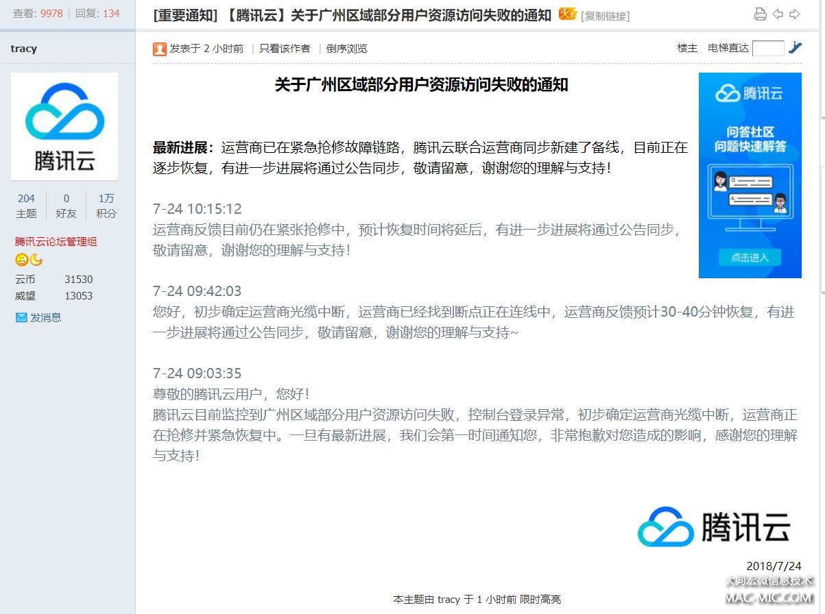 前沿數(shù)控技術(shù)在微博中表示,在業(yè)務(wù)量的需求下,公司使用了騰訊云,可“災(zāi)難”發(fā)生在2018年7月20日。接下來的兩天,騰訊云組織了技術(shù)專家來對此次故障進(jìn)行補(bǔ)救,但前沿數(shù)控技術(shù)公司數(shù)據(jù)還是丟失了。